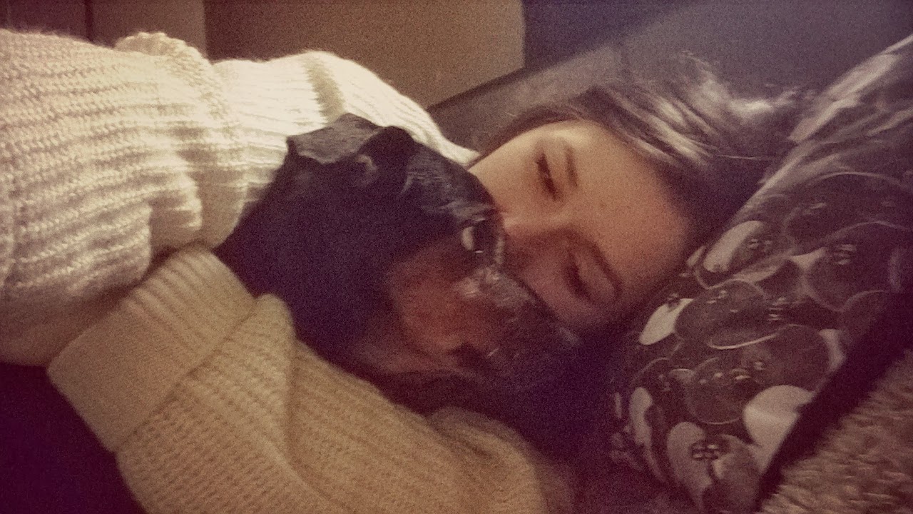 snuggling with the puppy bear