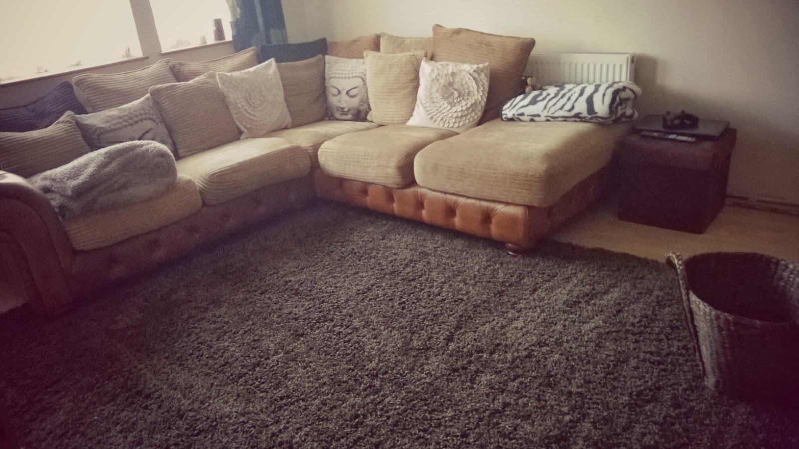 Since baby will soon be here and she will be crawling before we know it, we bought a huge new rug for the living room. It's so soft, I am in love.