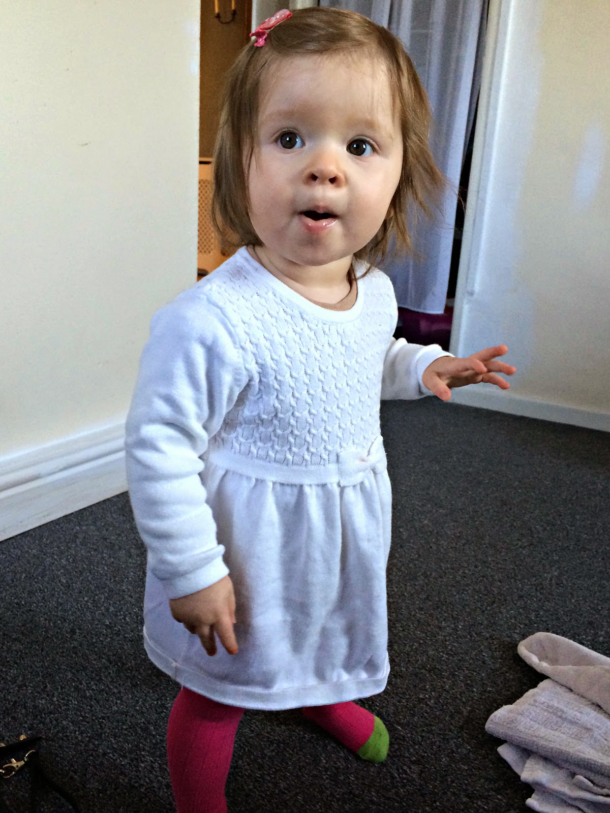 This week was Indie's birthday so I will be doing a 'week in outfits' post sometime during the next week featuring some of Indie's many outfits that she wore out and about. One of my favourites 'apart from her birthday outfit' was this beautiful white knitted dress from Matalan. She wore it with her pink and green tights from Little Bird by Jools Oliver.