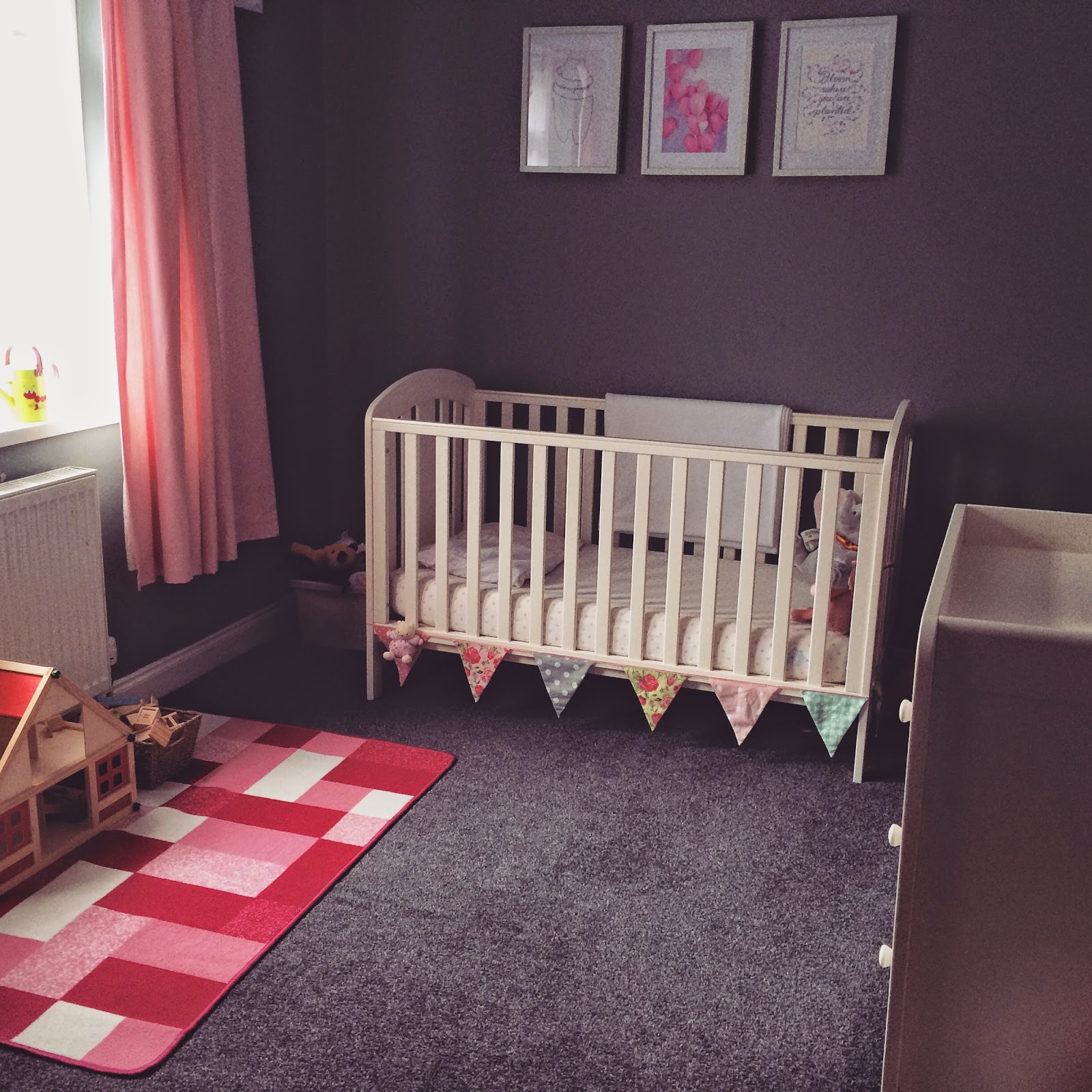 On Sunday we decided to go out and visit a few shops for a browse. We went to the local garden centre where hubby bought Indie some bunting for around her cot and I think it looks really sweet.