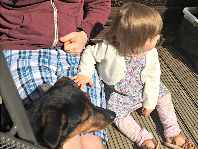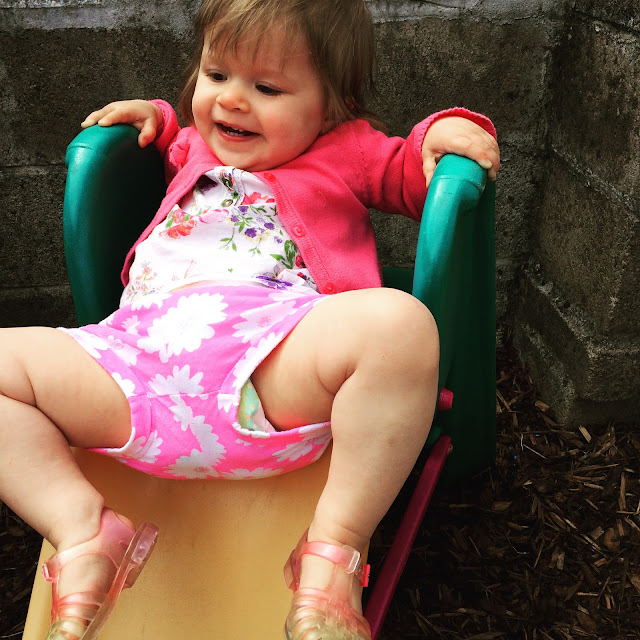 In the afternoon we played in the garden and enjoyed the sun together. Indie is yet to master how to use a slide...