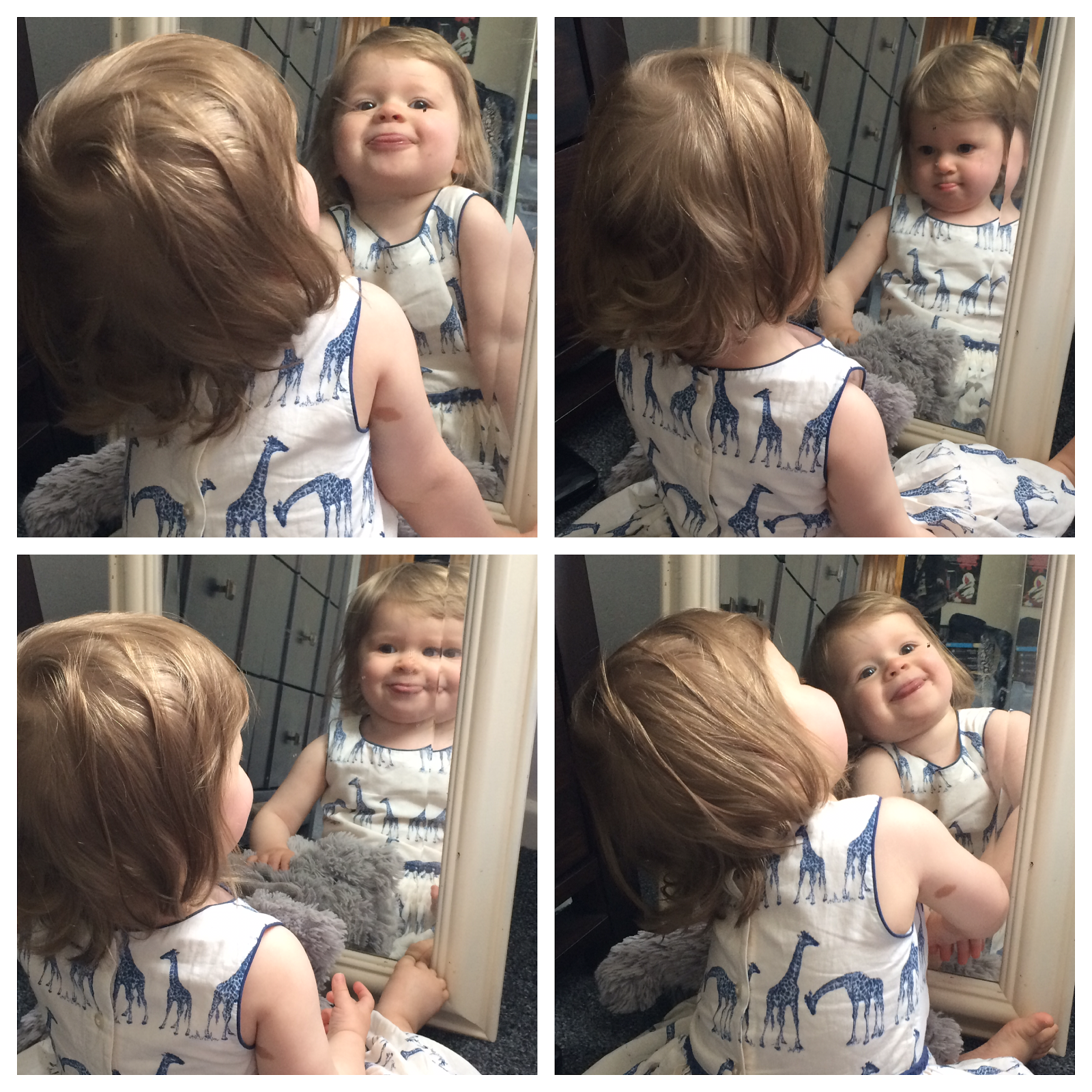 This little girl just loves the mirror. I recently caught her making faces to herself. So sweet.