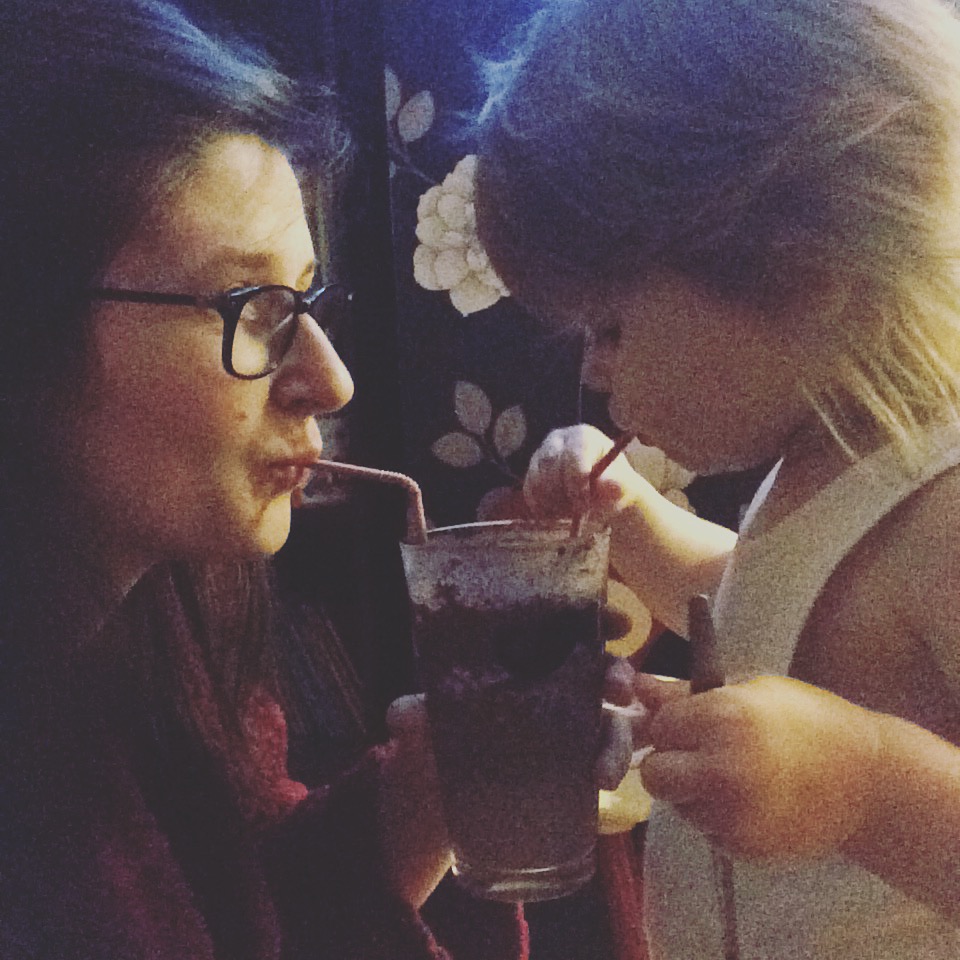 Back to this weekend, sharing a chocolate fudge brownie milkshake with my little love...