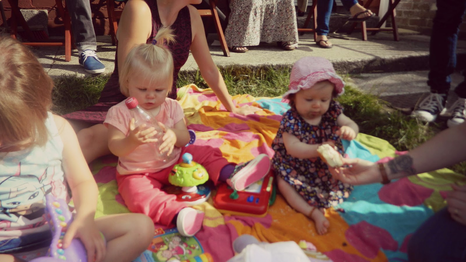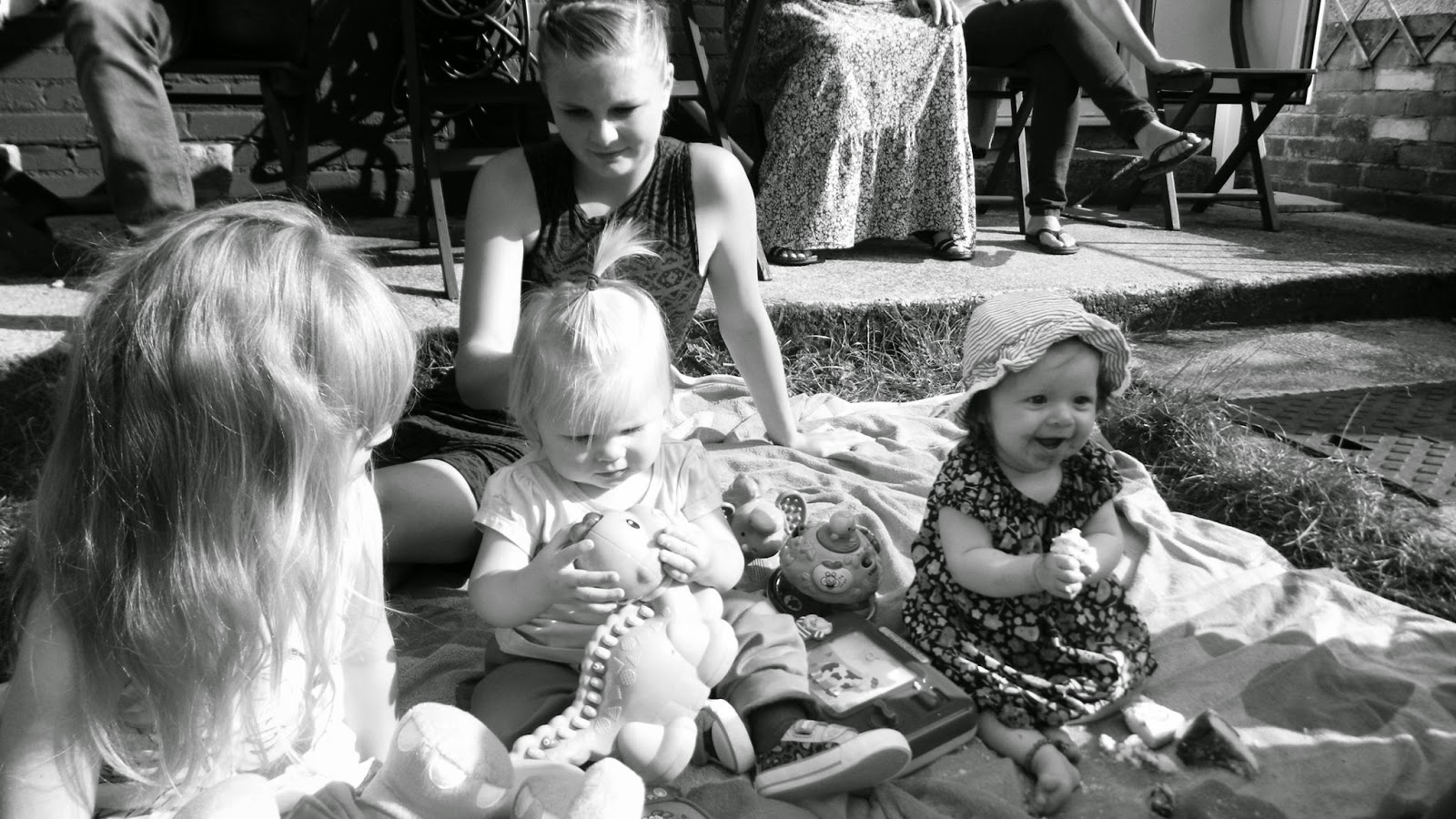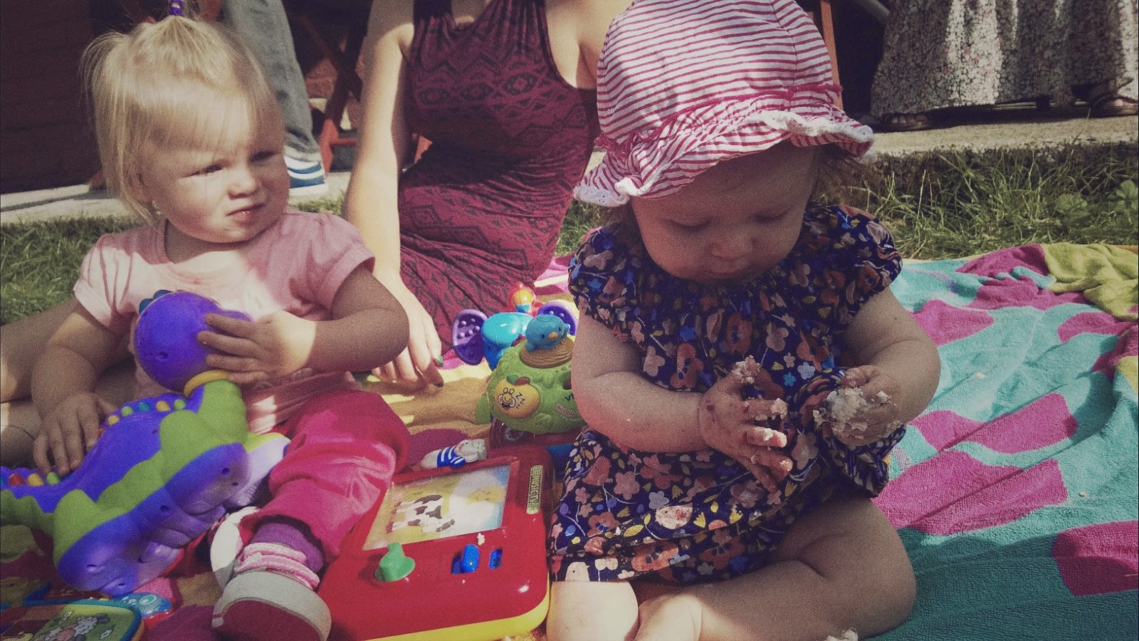 Indie eventually shared her cake, that Hallie took from her feet; little ones are truly fascinating.
