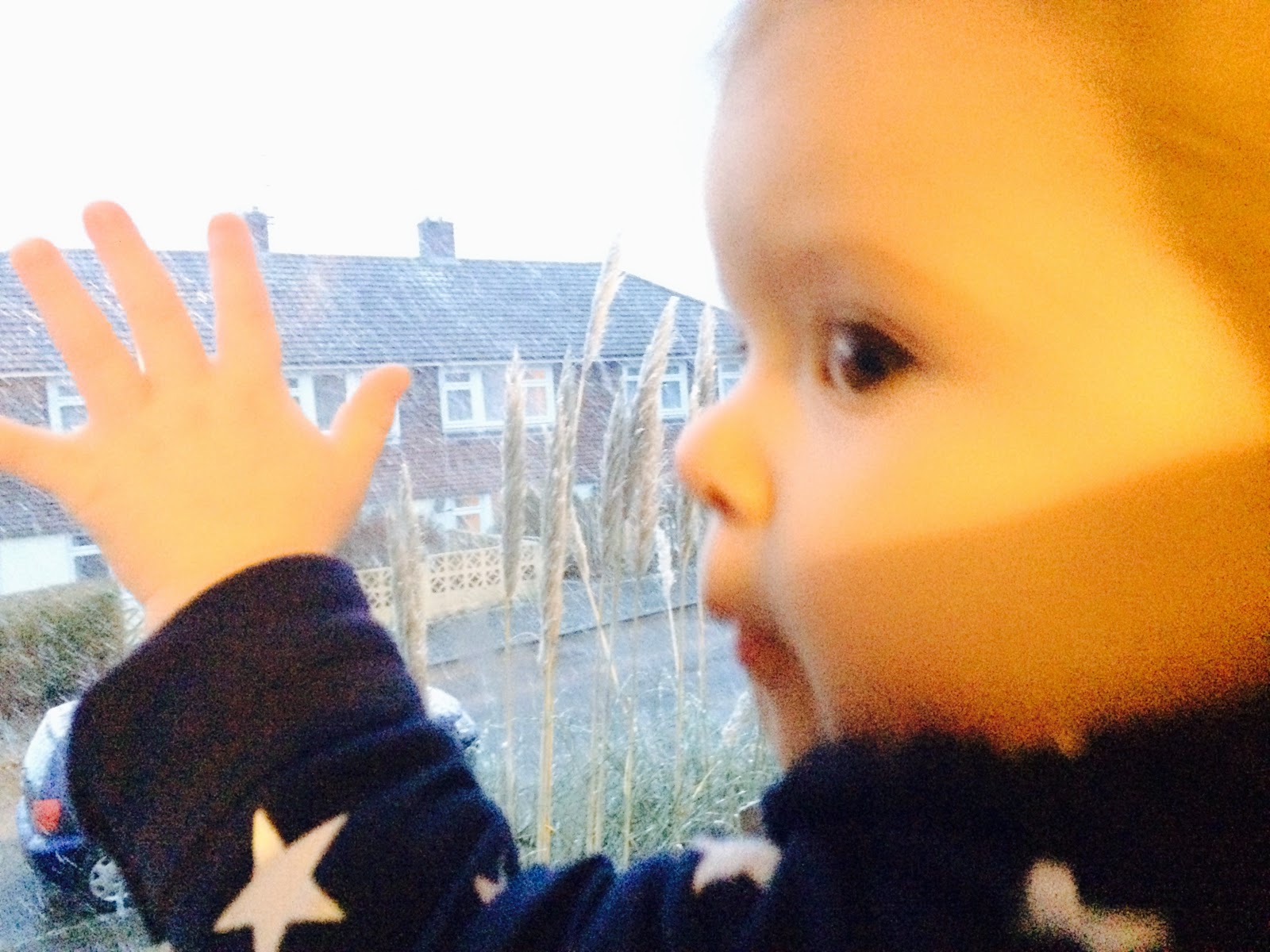 Today Indie experienced snow for the first time. We had a good half hour of the chunkiest, fluffiest snow I have ever seen so we took the opportunity and held Indie in the window.