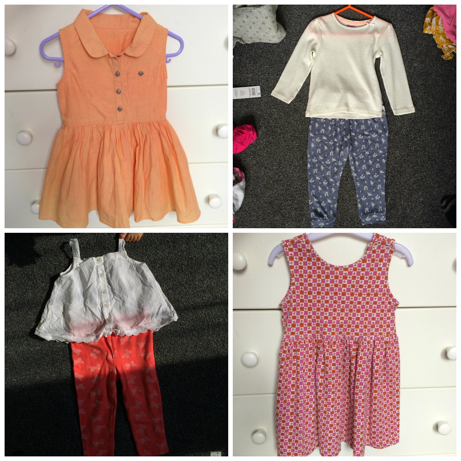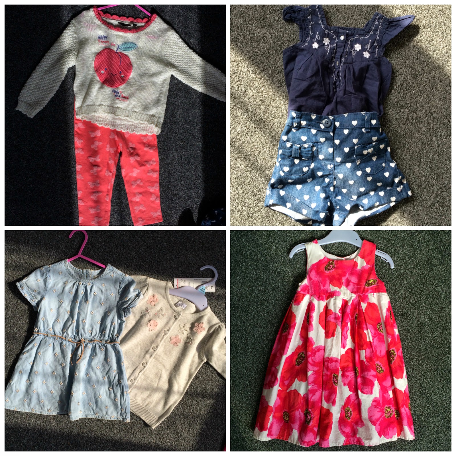 1) Jumpers from George, Leggins from F&F 2) Top from Gap, Shorts from Primark 3) Dress from Zara, Cardigan from F&F 4) Dress from Next |