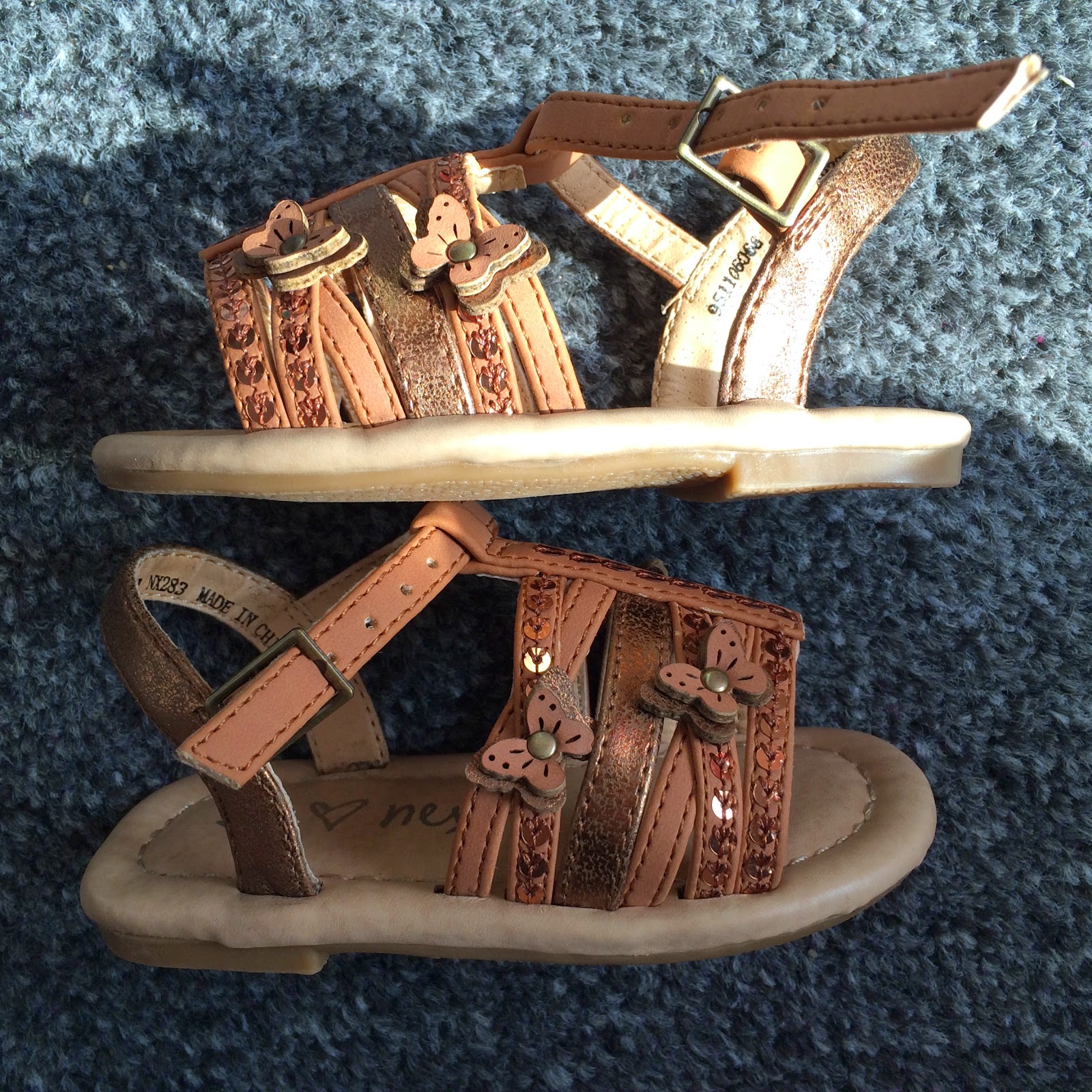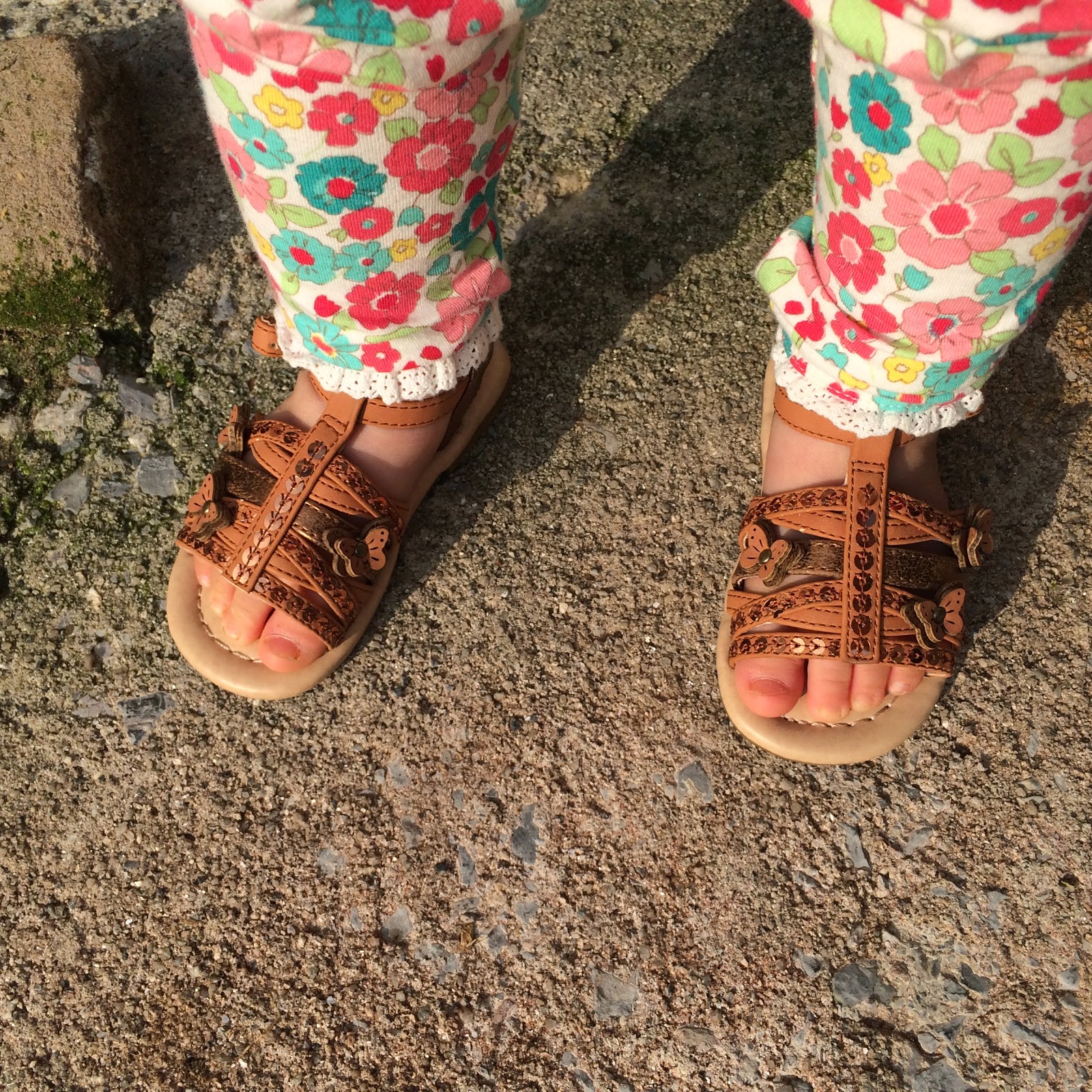 I ended up ordering these Tan Sandals in a size 4 costing £12. Even though Indie is a size 3 these fit her perfectly with a little room for growth. The material is soft and buttery and I think they will last for quite a while because they have adjustable straps that will grow with the length of her feet.