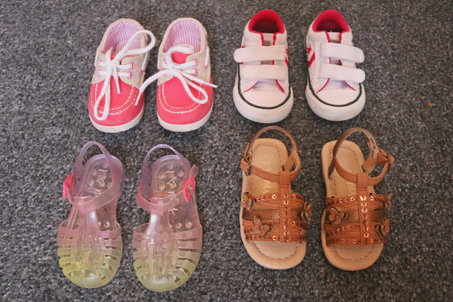 Something I never even thought about until Indie started to walk was shoes. There is nothing more important than a supportive comfortable shoe. We have 2 pairs of closed supportive shoes for Indie for general running about and when we got out for walks, and 2 pairs of cooler summer shoes. She has a pair of Jelly Sandals for walking on the warmer days, and a pair of cool open sandals for car journeys and pram outings to keep her feet cool.